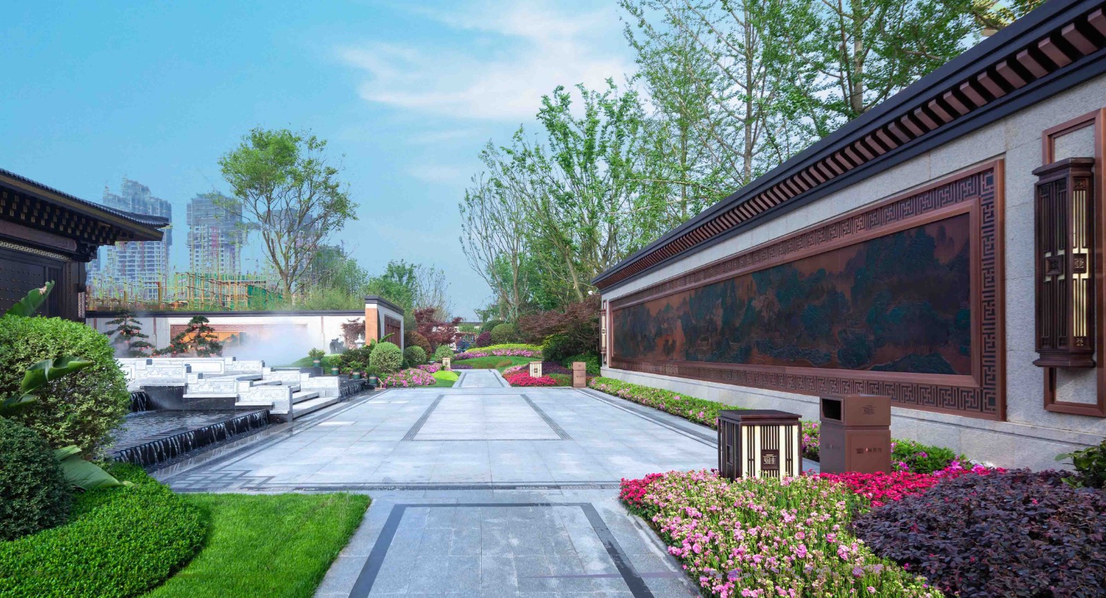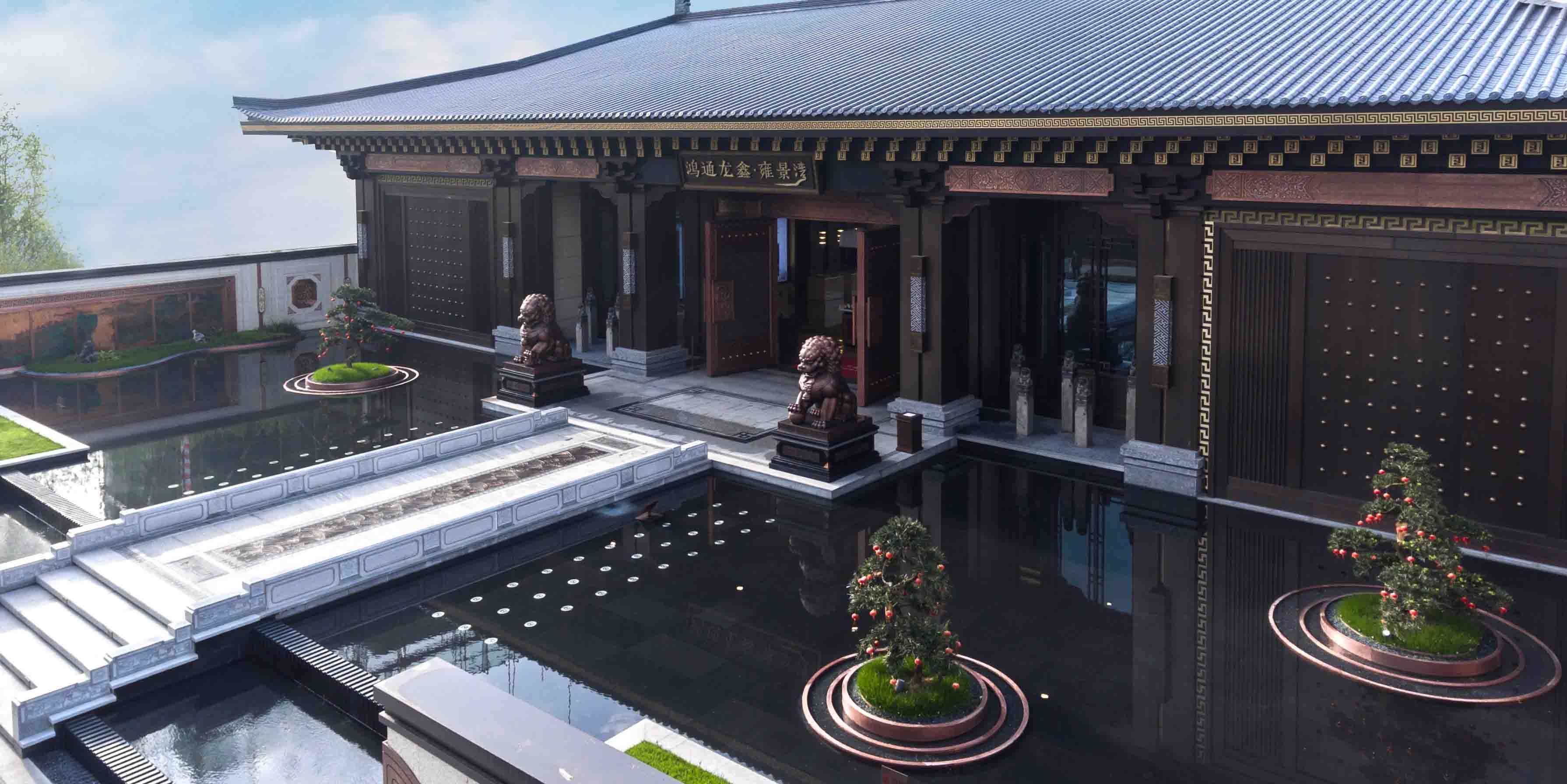 空间的开合、过渡、对比,产生诗意的韵律感与节奏感,引导情感变化,营造整体性的体验场所,结合中国古典园林的空间格局,打造古典园林式的多进空间和礼仪秩序的人文住宅景观,通过开合、转折、回旋、抑扬的节奏来使空间转换,使游园情感得到升华。