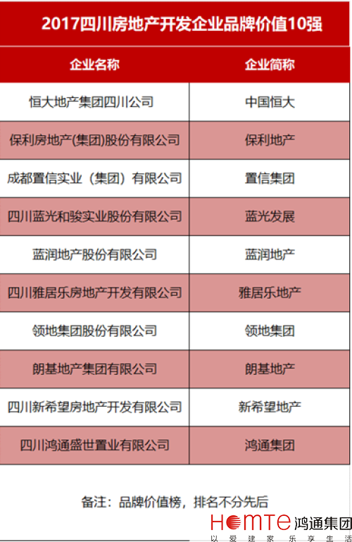 “2017四川房地产开发企业品牌价值十强”是由测评组通过对川内企业的财务纬度流水值、市场评估及美誉度三大指标,进行科学评估和系统的数据分析而评出,鸿通集团进入榜单。