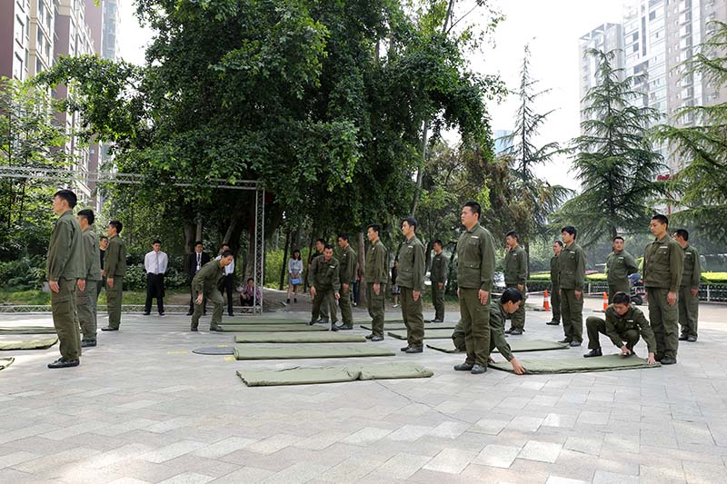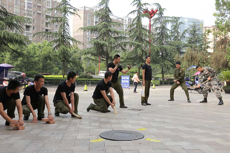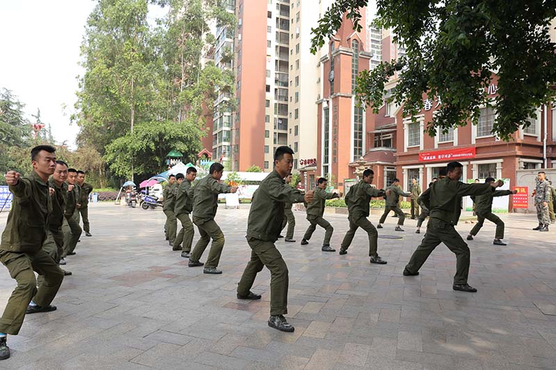 所有受训学员士气高昂,整齐的排列成方队等待鸿通集团领导的检阅,接下来的汇报表演除了齐步、正步、转体还有前倒、徒手劈砖、格斗等等,充分的展现了鸿通人的精神面貌及专业技能。