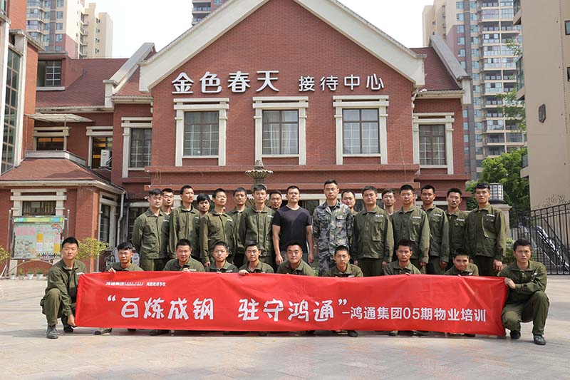 鸿通集团为了提升物业人员整体素质,打造和谐舒适的居住环境,针对物业保安人员进行为期5天的军训,不仅仅是对工作人员体能上的考验,更针对小区防盗、停车指引等实际工作中必不可少的环节进行训练。